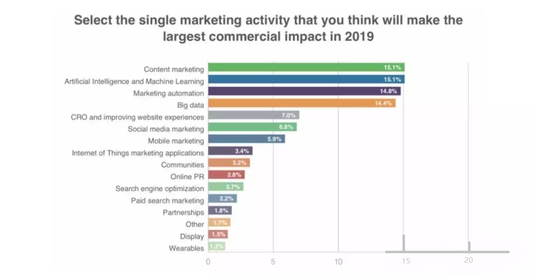 目前90%的机构使用内容营销,营销者的预算平均有25%用于内容营销,78%的首席营销官认为原创内容是营销的未来。而在2019年,企业对这一话题的关注度也是居高不下。