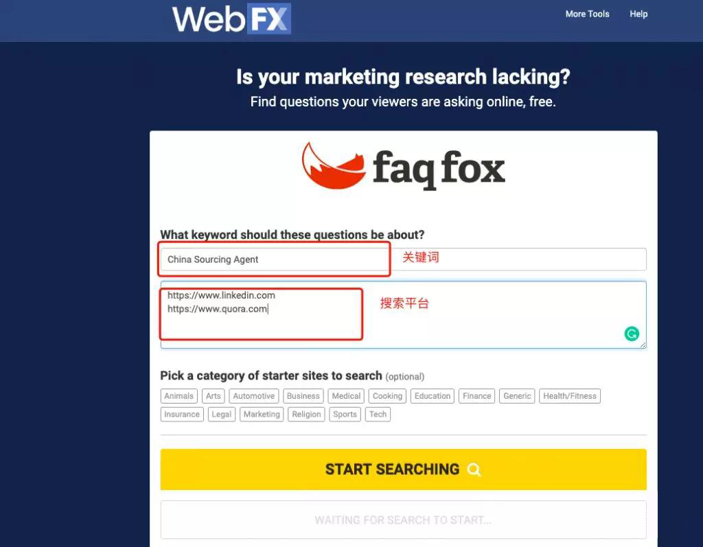 FAQ Fox是一款可以根据你的目标关键词快速查找问题的平台。你只需要输入关键词,然后选择想要查找的平台,例如:Facebook、YouTube、Reddit等,然后就可以检索出来这些平台上面有关该关键词的问题,点击可查看详情。