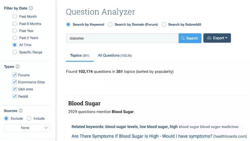 BuzzSumo平台的又一力作。它和FAQ Fox很相似,但是它结合和BuzzSumo的语义分析功能和社交数据。所以数据方面更加的准确。