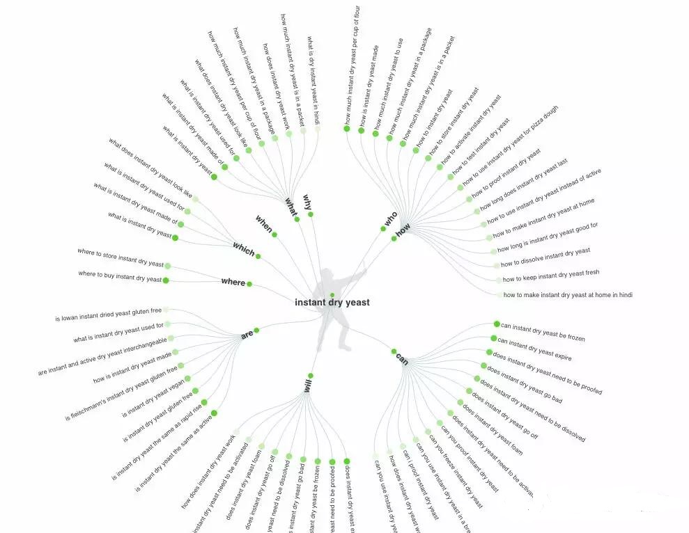 Answer The Public是一种和KeywordTool.io非常相似的工具,但是值得一提的是,它将谷歌的数据转化为问题并通过可视化的方式去呈现。