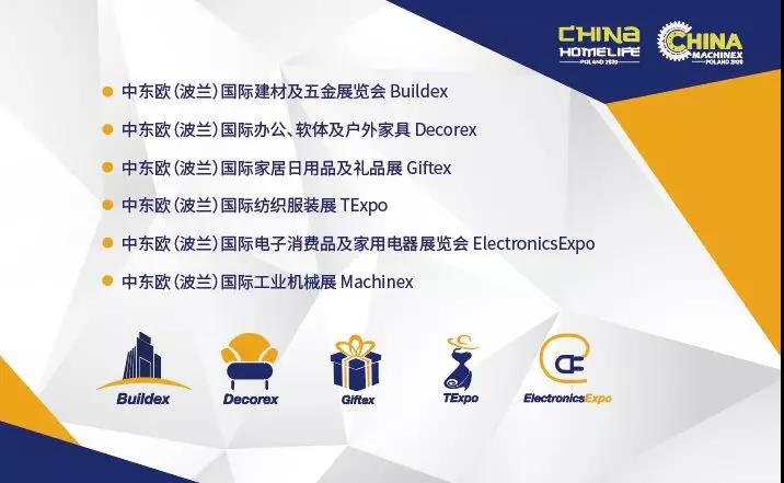 为了使展会更专业,更集中,更全面,2020波兰展全面升级,将结合近年来中东欧市场上增长最快的行业:建材五金,家具,家居礼品,纺织服装,3C电子家电及工业机械,展会将围绕这六大行业开展主题展。波兰展HOMELIFE & MACHINEX两大主题展积累七年的经验,为波兰展六大细分专业主题展奠定了良好的基础。