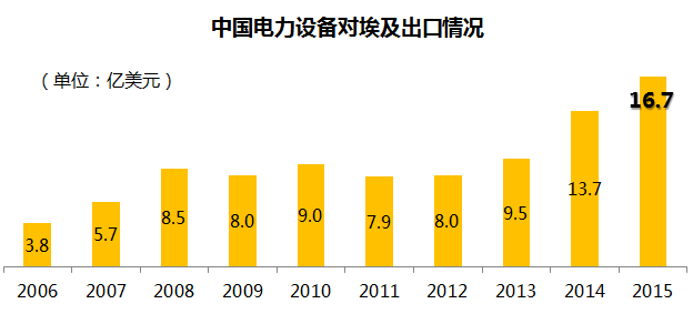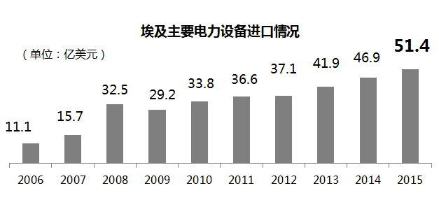 埃及对中国电力设备的进口需求在近三年剧增,2015年同比2012年增长100%,达到16.7亿美元。现阶段是中国电力设备企业进军埃及市场的有利时期: