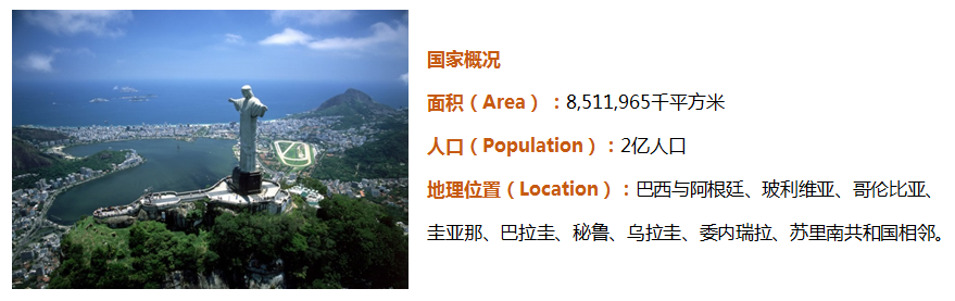 •巴西是南美最有影响力的国家,是南美洲最大的国家;