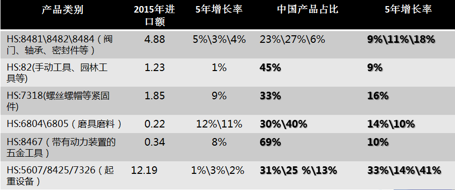 五金工具涉及的重点产品进口情况(海关代码)--单位:亿美元