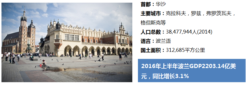 波兰的人口、面积、GDP总量、对外贸易、吸收外国直接投资额在中东欧地区居首,且拥有3800万人口的市场,是欧盟内第六大经济体,东西可辐射2亿人口市场。