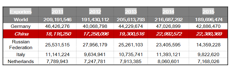 2015年波贸易进口总额为1896.96亿美元,其中,中国对波出口223.80亿美元,占比11.8%。中国荣升为波兰第二大进口来源国。