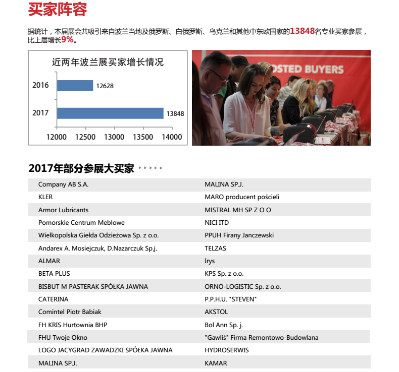 欧洲议会副主席理查德·切内茨基先生这样评价:波兰展是中国与中东欧16国最重要的贸易交流平台,因此欧洲议会决定以官方名义参与本次展会,希望中国与波兰以及其它中东欧国家建立更为密切的合作。亚当·斯储兹克先生更是希望波兰展成为对接“一带一路”建设的重要贸易交流平台。
