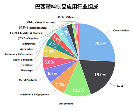 建筑业、食品包装业及汽车制造业是巴西主要的塑料消费行业,三大行业的消耗量站到巴西全年的55%。