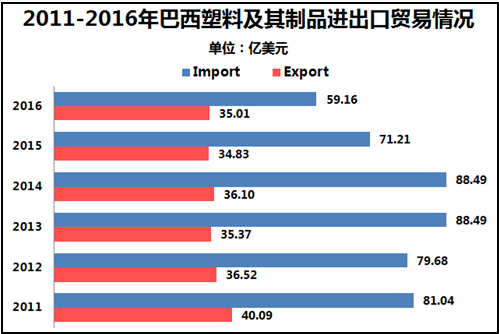 巴西是塑料贸易大国,2016年塑料及其制品的进出口贸易额达到121.13亿美元。