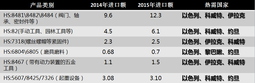 五金工具涉及的重点产品进口情况(海关代码)--单位:亿美元