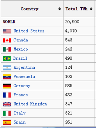 巴西是世界第四大电力消费国,年电力消耗量为498TWh。