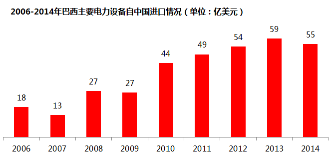 中国有一部分电力设备企业早就瞄准了巴西乃至整个南美市场,2011年以来,中国对巴西电力设备出口稳定在50-60亿美元,相当于巴西总需求的1/3。