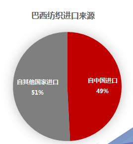 2016年巴西纺织行业进口额超49亿美金,其中进口中国纺织品超24亿美金,占比达到49%。中国是巴西纺织进口最大来源国。