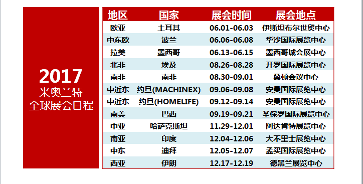 作为12年海外自办展展会品牌,服务体系成熟、市场基础坚实、区域影响力巨大。2016年,展会将进一步推进Match-Making 现场贸易配对、VIP超级买家计划、定邀买家服务以及展商海外营销全年支持等服务,全方位支持中国五金工具企业走出去。
