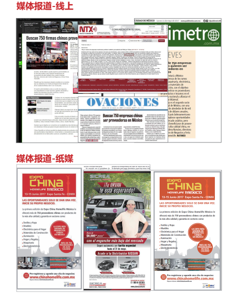 中国外交部、新华网等主流网站对墨西哥展全方位新闻报道:“中国(墨西哥)贸易博览会13日在墨西哥城开幕。展会将中国优质家居及工业产品带到大洋彼岸,让墨西哥民众近距离感受‘中国制造’新亮点。”