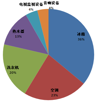 2013年约旦家电总进口量约为21.8亿美元,冰箱进口占36%,空调占23%,洗衣机占20%,热水器占13%。,电视以及音响设备约占8%。约旦家用电器进口的65%用于本国使用,其他转口至沙特阿拉伯、卡塔尔、伊拉克以和阿联酋等国家。